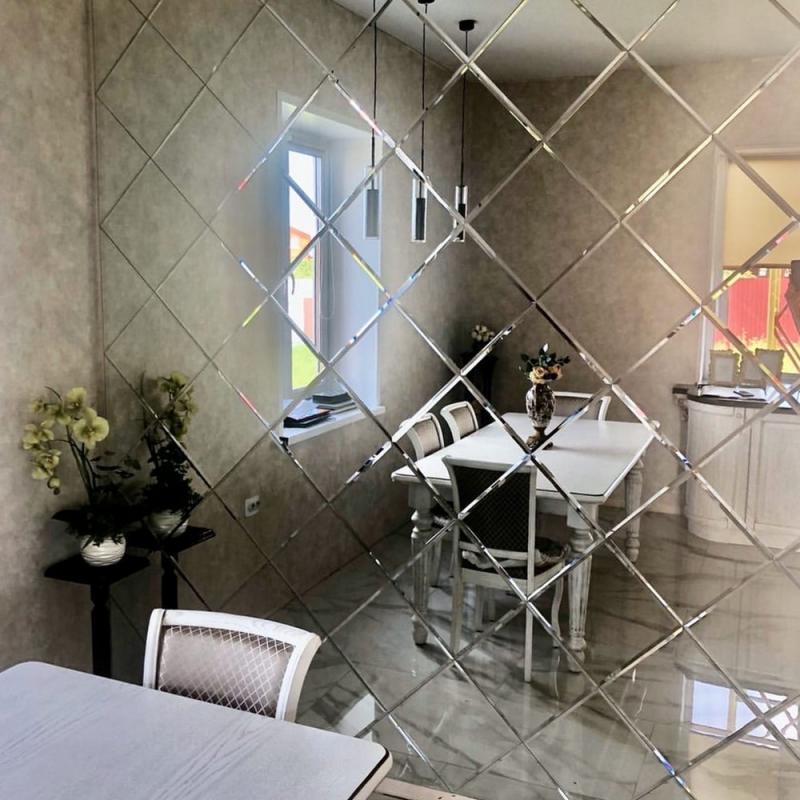Использована зеркальная квадратная плитка с фацетом.
